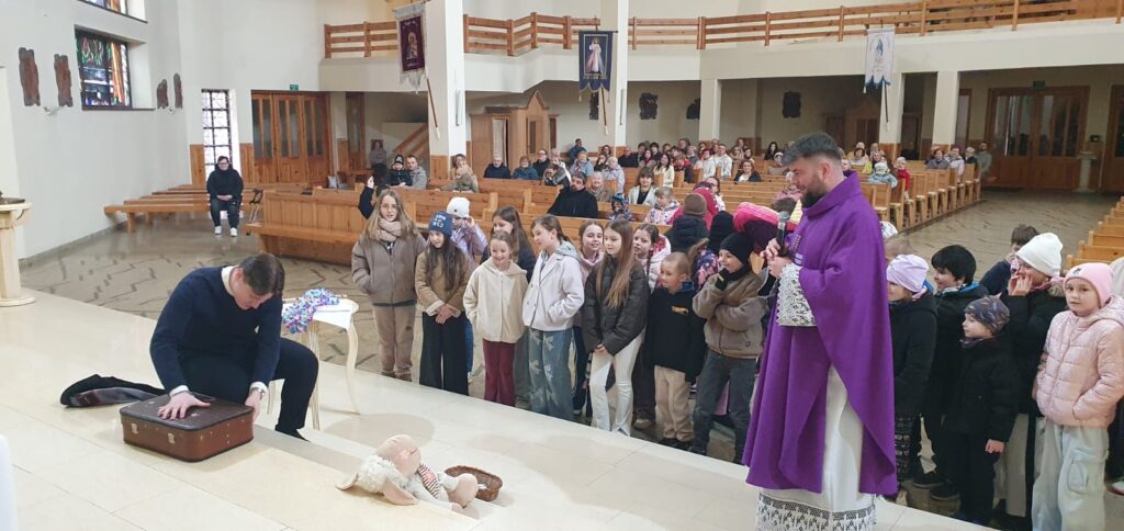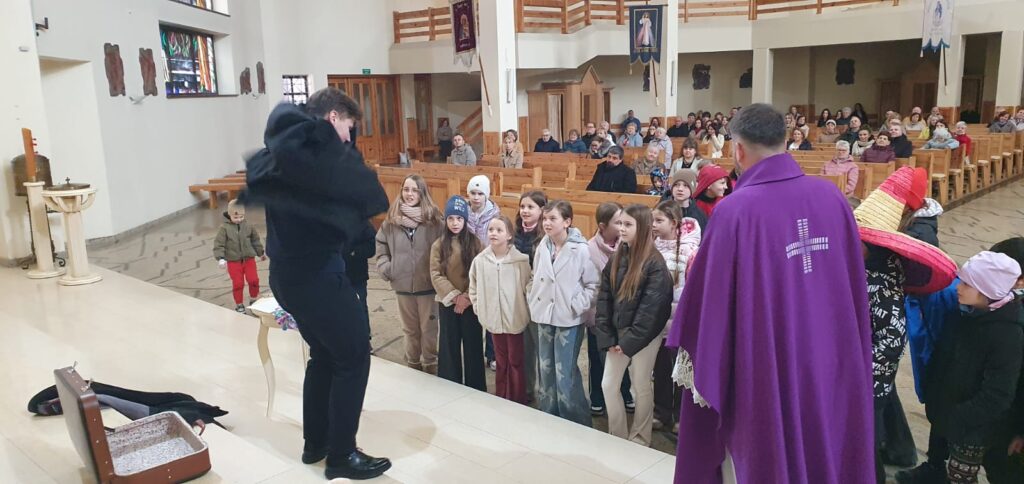 „Niedziele powołaniowe” na stałe wpisały się w kalendarz Wyższego Seminarium Duchownego w Pelplinie. 15 marca w 4 niedzielę wielkiego postu naszą parafialną wspólnotę odwiedził Bartosz Rakowski, alumn III roku WSD. Kleryk Bartosz podczas Mszy Świętych opowiadał o swoim powołaniu i doświadczeniu spotkania Boga. Przybliżył także, jak wygląda codzienne życie kleryków oraz odpowiadał na pytania najmłodszych, jak choćby: „skąd biorą się księża?”.