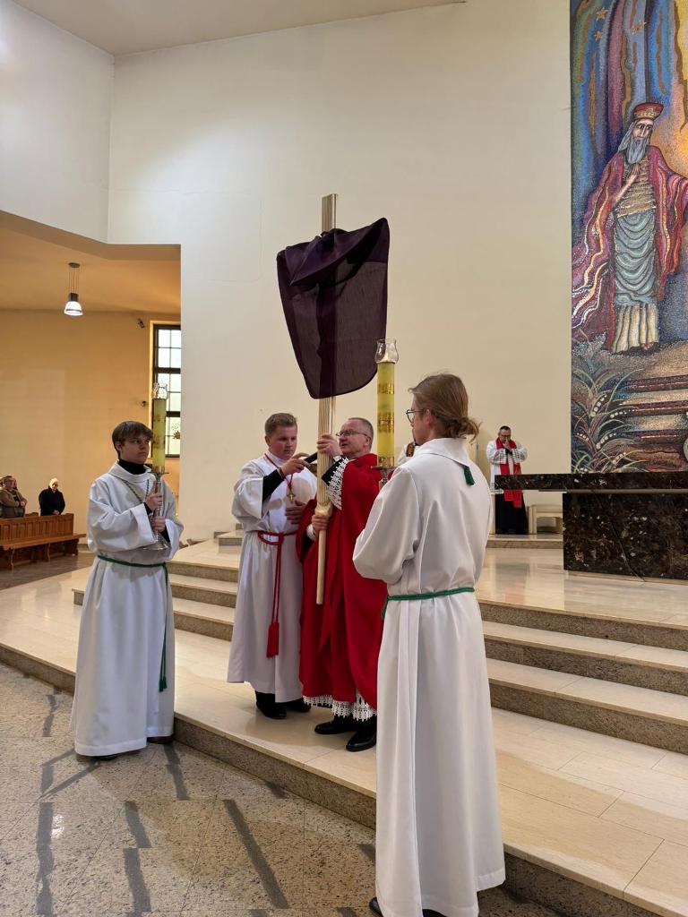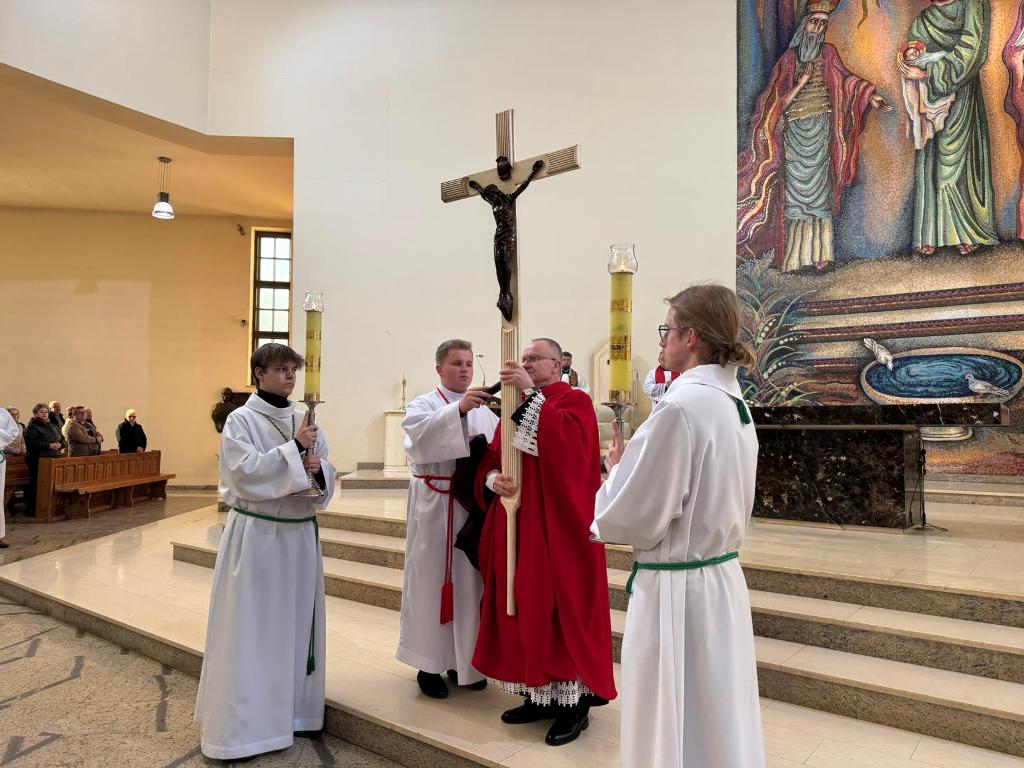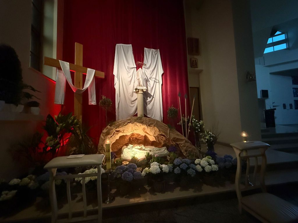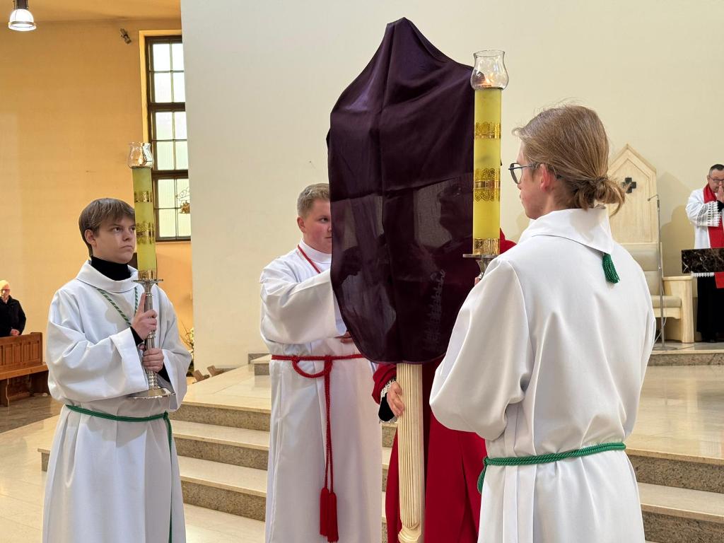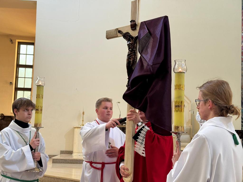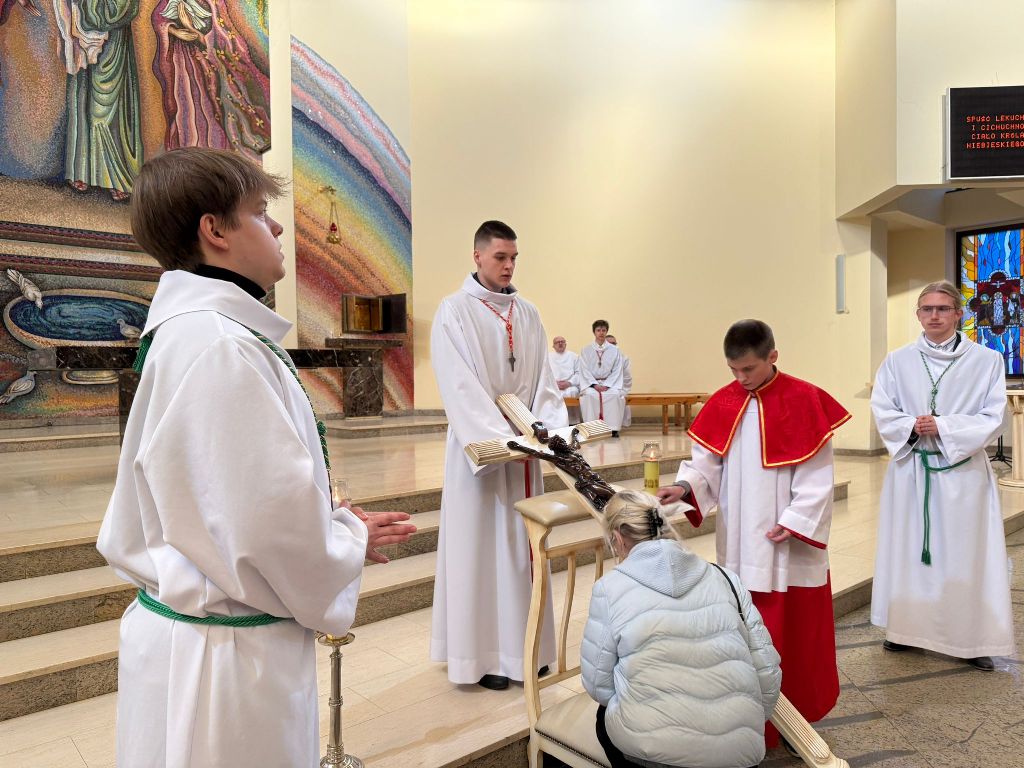 W naszym kościele Liturgia na cześć Męki Pańskiej rozpoczęła się o godz. 17:00. Liturgii przewodniczył ks. Arkadiusz. Opis Męki Pańskiej oraz adoracja Krzyża wprowadziły wiernych w refleksję nad męką i śmiercią Chrystusa.