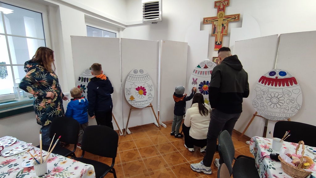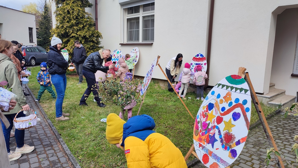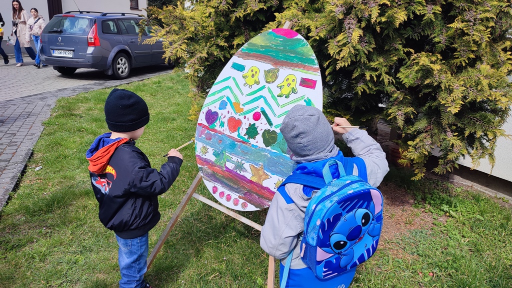 W sobotnie przedpołudnie, po poświęceniu pokarmów na stół wielkanocny przez cały dzień najpierw w kawiarence parafialnej (padał deszcz) następnie na dworze, dzieci naszej parafii miały okazję pomalować i ozdobić wielkanocne jajka. Jajko to symbol nowego życia. Piękne ozdobione pisanki niech będą wyrazem dobrych życzeń naszych najmłodszych parafian dla nas wszystkich.