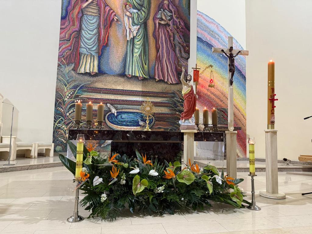 W czasie Liturgii Chrzcielnej została odśpiewana Litania do wszystkich świętych, po czym kapłan paschałem uświęcił wodę.