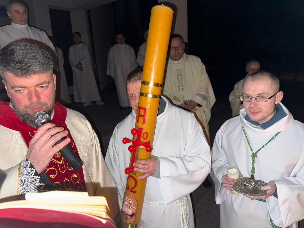 Po zapaleniu paschału wysłuchaliśmy orędzia paschalnego. Podczas śpiewania hymnu ,,Chwała”, znowu zabiły dzwony.