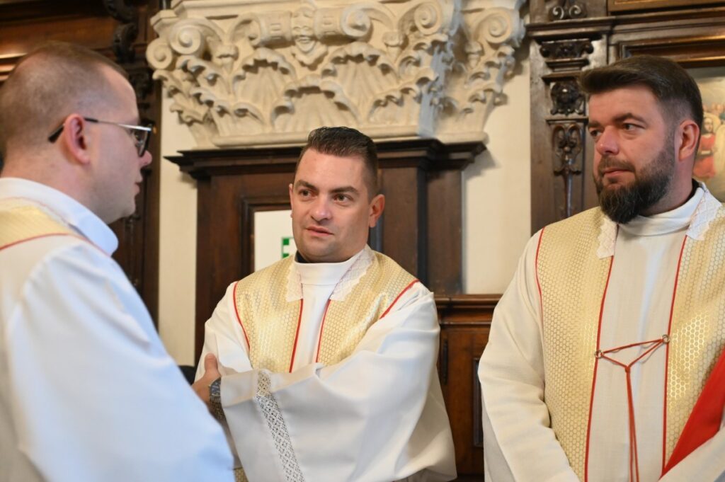 Poruszającą homilię wygłosił ks. Mateusz Pryczkowski, wikariusz z parafii św. Marii Magdaleny w Czersku i jednocześnie duszpasterz zaangażowany w pracę Diecezjalnego Zespołu ds. Duszpasterstwa Młodzieży. Kapłan, odwołując się do ewangelicznej sceny spotkania Chrystusa z Natanaelem, postawił fundamentalne pytanie o autentyczność i potrzebę bycia poznanym. Zacytował słowa Jezusa: „Oto prawdziwy Izraelita, bez podstępu”, które Natanael skwitował pytaniem: „Skąd mnie znasz?”. Ksiądz Mateusz wyjaśnił, że Jezus patrzy na każdego z maturzystów i mówi: „Znam cię. Widziałem cię pod figowcem”. Tłumacząc symbolikę figowca jako miejsca dylematów, pytań, rozterek, a nawet łez, kaznodzieja podkreślił, że Chrystus widzi ich głębokie niepokoje, sekrety i wady, ale nie ocenia, lecz chce być obok. Dzieląc się swoim osobistym świadectwem, ksiądz Mateusz opowiedział, jak dążenie w życiu tylko do „profitu” i sukcesu na studiach matematycznych w Gdańsku, mimo zewnętrznych osiągnięć, prowadziło do wewnętrznego niepokoju. Dopiero decyzja o porzuceniu tej drogi i wstąpieniu do seminarium w Pelplinie, podyktowana szukaniem autentycznego szczęścia, przyniosła mu spełnienie. Tym samym wezwał młodzież, aby w tym kluczowym momencie życia zadali Chrystusowi pytanie o poznanie, kierując się duchem św. Pier Giorgio Frassatiego, który za swoje życiowe motto obrał słowa „Verso l’alto” – zawsze w górę, ciągle dążąc do świętości i mając wysoko podniesioną głowę.