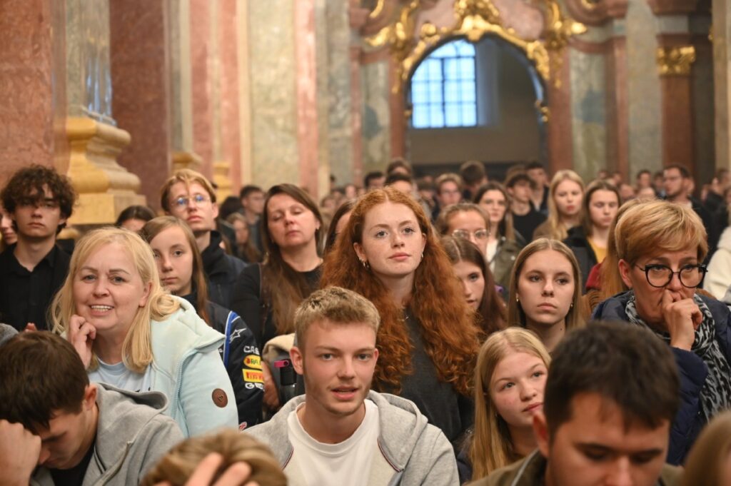 Po Mszy Świętej, w duchu integracji, młodzi ludzie zgromadzili się w auli o. Kordeckiego. Był to czas radości, wspólnej muzyki oraz wysłuchania poruszającego świadectwa Krzysztofa Sowińskiego. Znany ewangelizator, youtuber i autor podcastu „Na Werandzie” podzielił się pięknym i szczerym świadectwem swojego odkrycia Boga i przemiany w życiu, które było wcześniej pogubione. Sowiński pokazał, że autentyczne szczęście i kierunek można odnaleźć tylko wtedy, gdy swoje życiowe plany zawierzy się Chrystusowi. Pielgrzymkę zwieńczył uroczysty Apel Jasnogórski w kaplicy Matki Bożej. Całe to doświadczenie było dla ponad dwóch tysięcy maturzystów diecezji pelplińskiej głębokim umocnieniem, zawierzeniem egzaminacyjnych wysiłków i życiowych wyborów Bogu oraz Maryi. Młodzi ludzie wracali do domów z przekonaniem, że dobry Pan Bóg jest blisko ich życia.