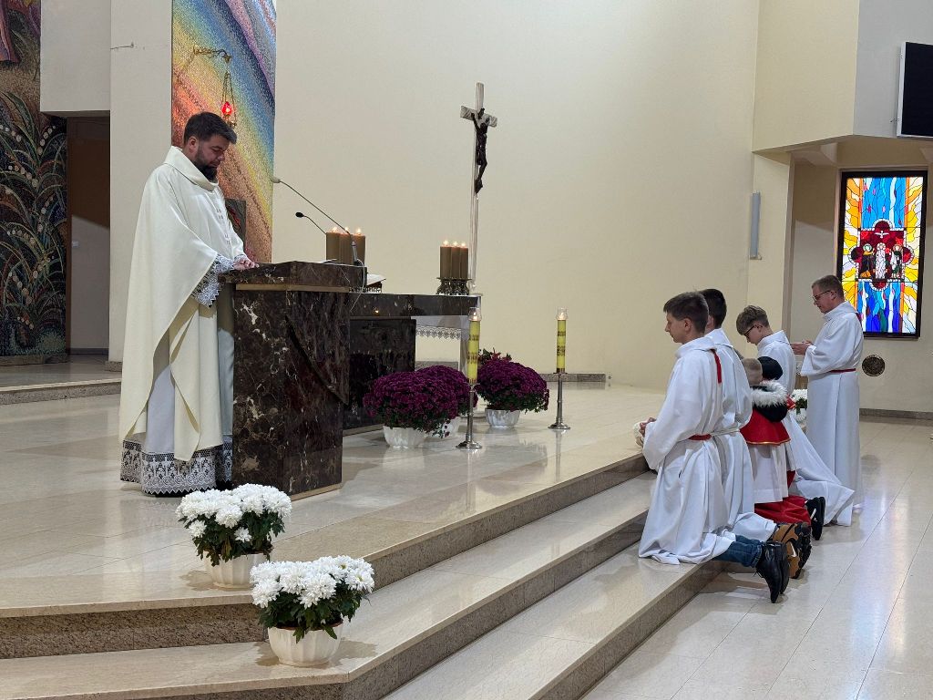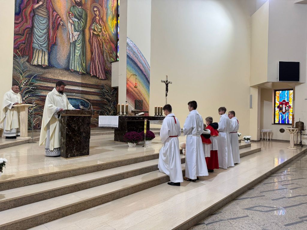 Dzisiaj w uroczystość Jezusa Chrystusa Króla Wszechświata, członkowie Liturgicznej Służby Ołtarza otrzymali promocje na kolejne stopnie posługi. Mszy św. przewodniczył ks. proboszcz Mariusz Herold, który udzielił błogosławieństwa zarówno nowym młodym i starszym ministrantom, jak i dwom ceremoniarzom.