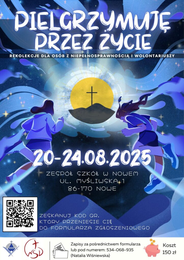 Grupa Rekolekcyjna CARITAS prowadzona przez kleryków Wyższego Seminarium Duchownego w Pelplinie serdecznie zaprasza osoby w niepełnosprawnością i wolontariuszy na rekolekcje pt. „Pielgrzymuję przez życie”, które odbędą się w dniach 20-24 sierpnia 2025 r. w Zespole Szkół w Nowem. Szczegóły wydarzenia na plakacie informacyjnym.