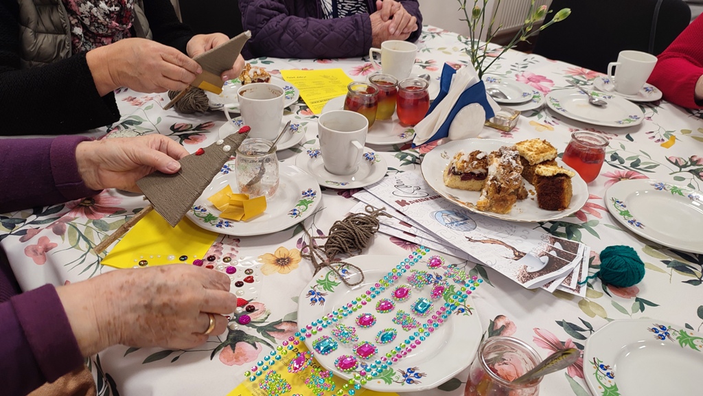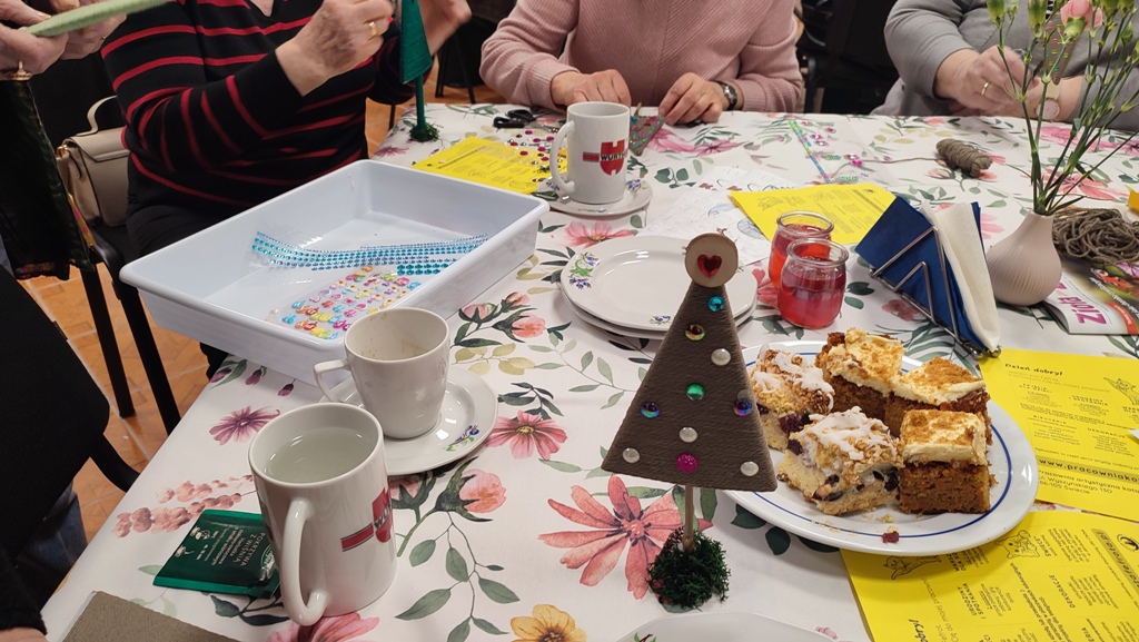 Podczas wykonywania ozdób, była okazja do wspólnych rozmów, skosztowania pysznego ciasta i napicia się pysznej rozgrzewającej herbatki z parafialnej kawiarenki.